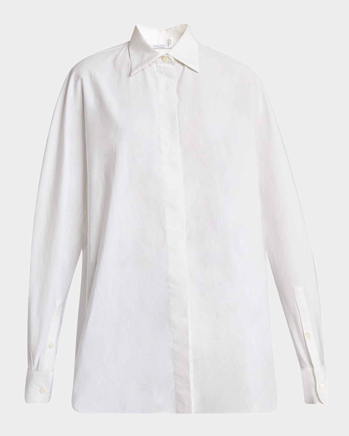 - Givenchy cocoon shirt featuring curved sleeves - Point collar; concealed button front - Long sleeves; button cuffs - Oversized fit - Shirttail hem - Cotton - Made in Italy