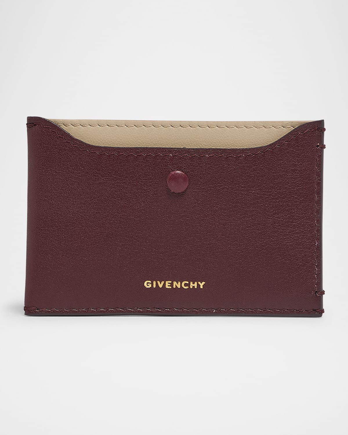 - Givenchy "Day" card case crafted in shiny leather with contrast interior and gold-tone logo lettering - Exterior, two card slots - Approx. 2.6"H x 3.6"W - Made in Italy
