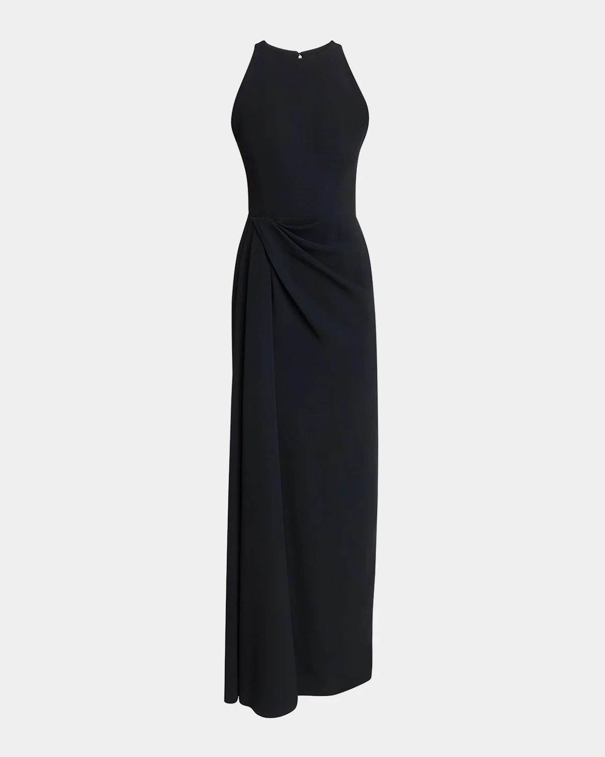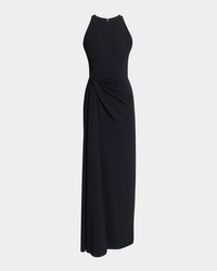 DRAPED HALTERNECK EVENING DRESS IN CREPE CADY