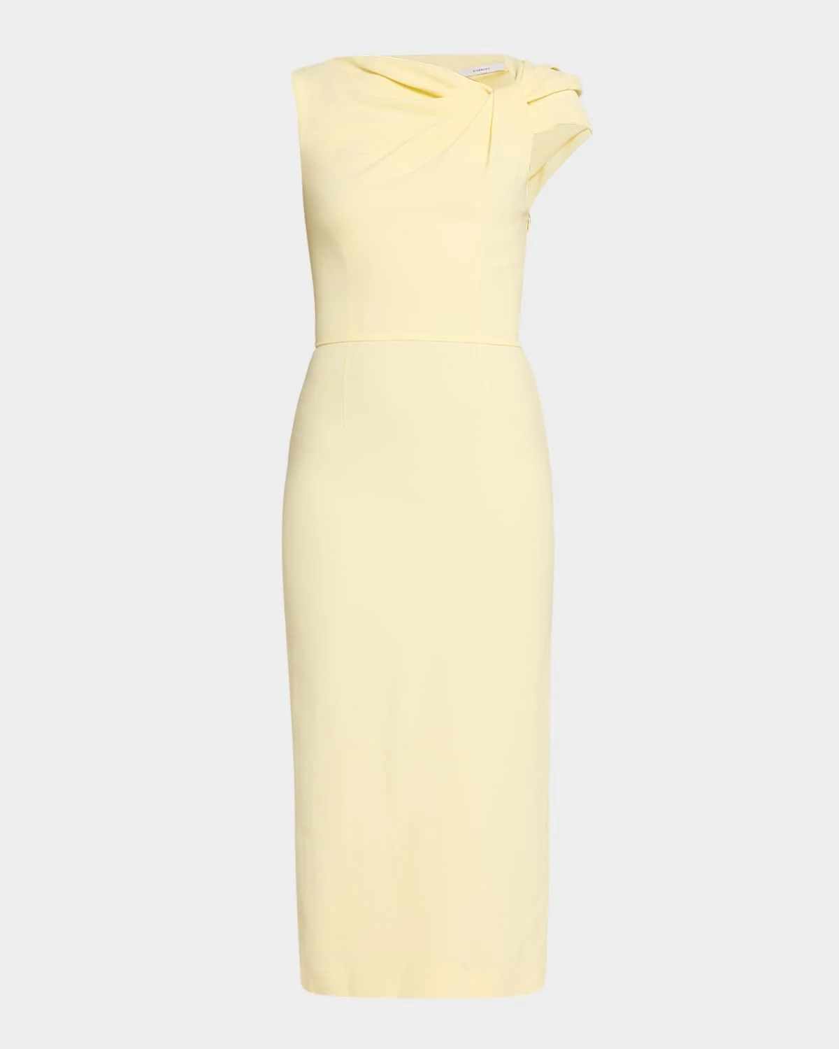 Refined and modern, this Givenchy dress features a softly draped neckline gathered at one shoulder for an elegant focal point. High neckline Sleeveless Sheath silhouette Hem falls below the knee Walking vent back Side zip Viscose/acetate/elastane Made in Italy