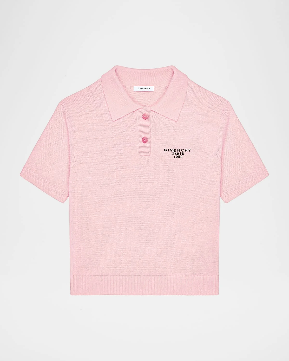 Givenchy polo with signature logo embroidery in a luxurious wool and cashmere blend Point collar; buttonplacket Short sleeves Classic fit Hem sits at the hip Pullover style Wool/cashmere Dry clean Made in Italy