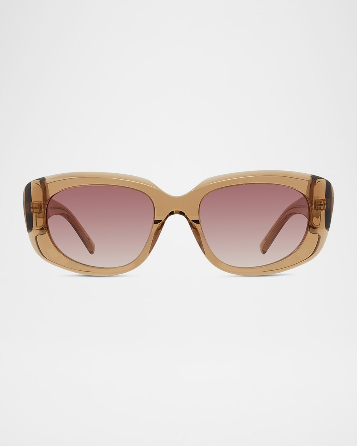 - Givenchy "GV Day" rectangle sunglasses in acetate - Eye/bridge/temple (in mm): 39.1-20-145 - Gradient lenses - Saddle nose bridge - Givenchy logo on both temples - Wide, tapered arms - 100% UVA/UVB protection - Imported - Proposition 65 warning for California residents