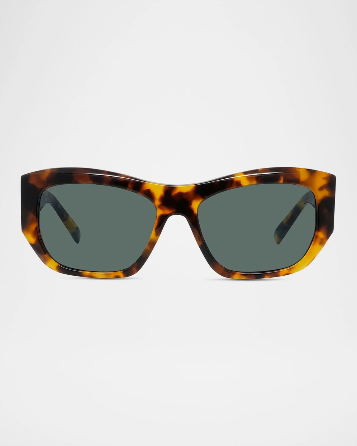 Rectangular and molded from a biobased acetate, the Givenchy "GV Day" sunglasses are crafted with a tortoiseshell pattern. Eye/bridge/temple (in mm): 5417135 Solid lenses GIVENCHY signature on the temples Thick, tapered arms 100% UVA/UVB protection Clean regularly with a soft cloth Imported