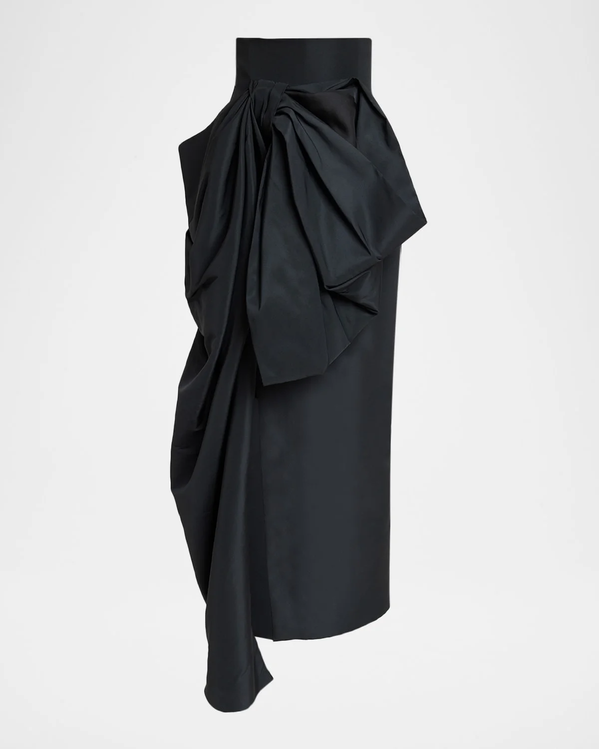 - Defined by an oversized bow and cascading drape, this Givenchy skirt brings sculptural drama to a sleek silhouette. - High waist - Full length - Skirt falls straight from hip to hem - Side slit hem - Back zip - Polyester - Made in Italy