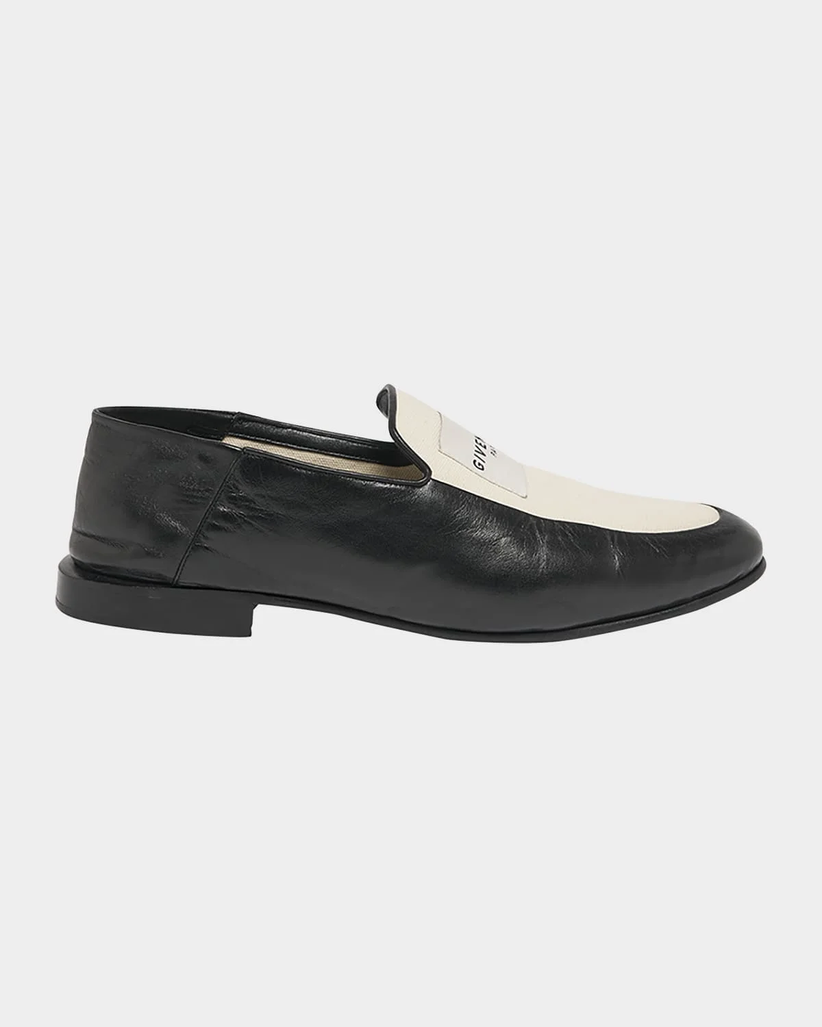 Givenchy in canvas and leather with a label detail Flat heel Round apron toe Notched vamp Slipon style Lining: Leather Made in Italy