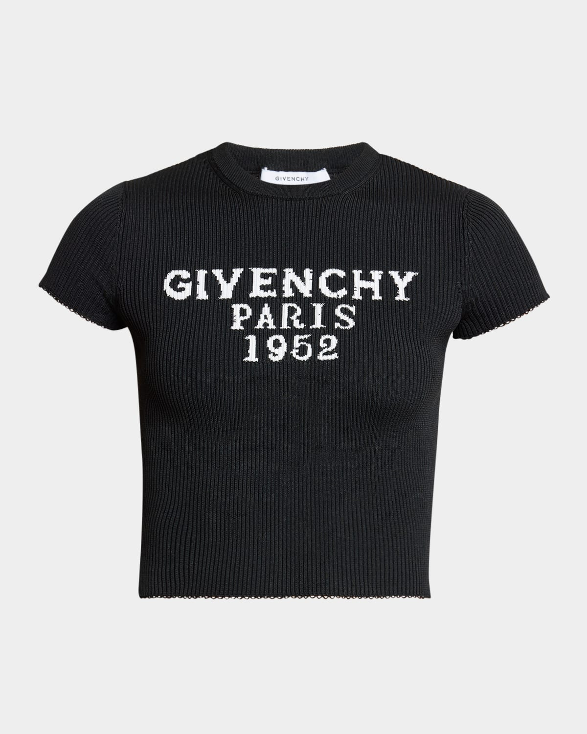 - Givenchy ribbed knit T-shirt finished with a lettering logo intarsia - Crew neckline - Short sleeves - Fitted - Cropped length - Pullover style - Cotton - Made in Italy