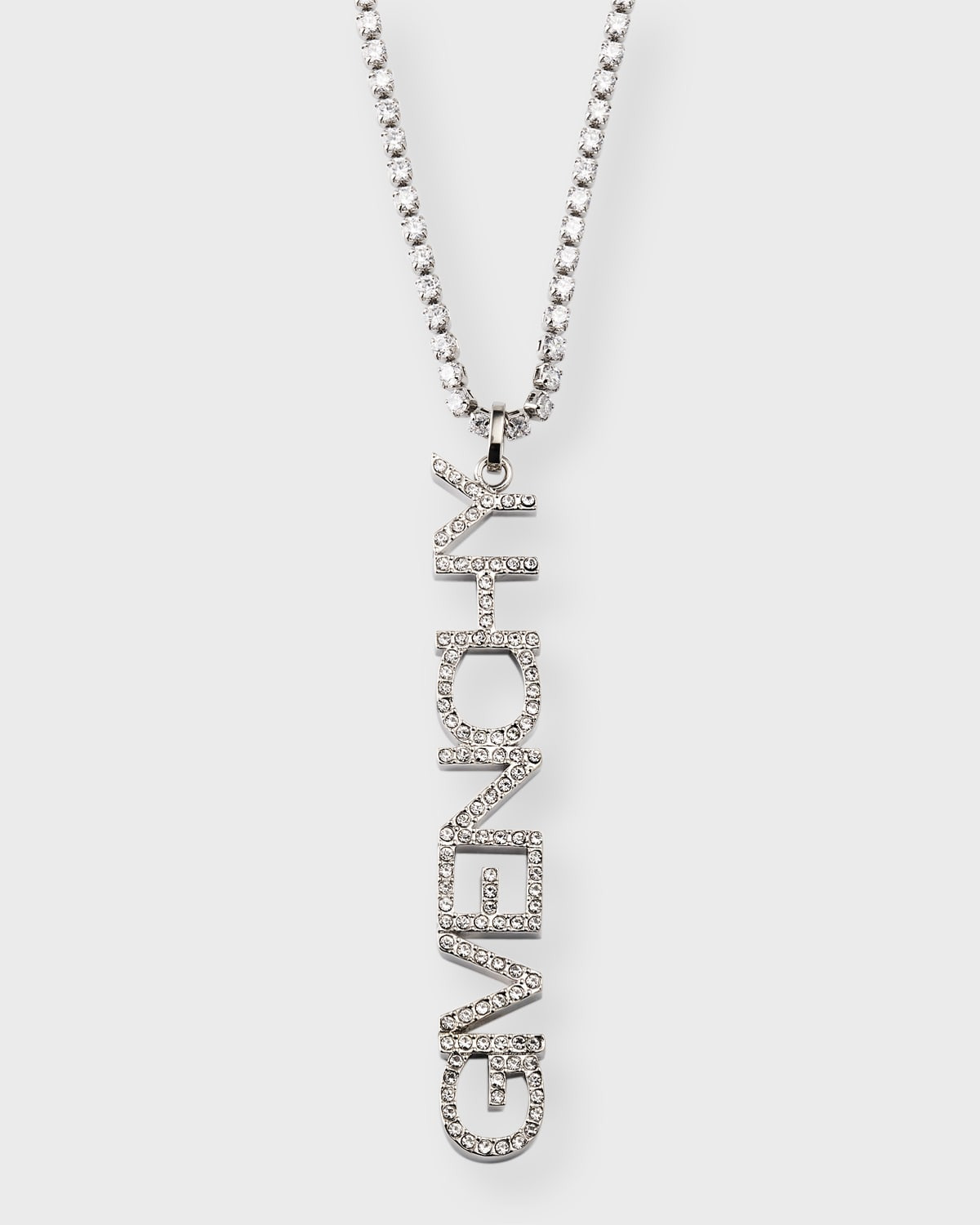 - Givenchy necklace with pave crystal chain and pendant - Approx. 30"L - Silvertone brass - Logo lettering pendant - Lobster clasp - Made in Italy