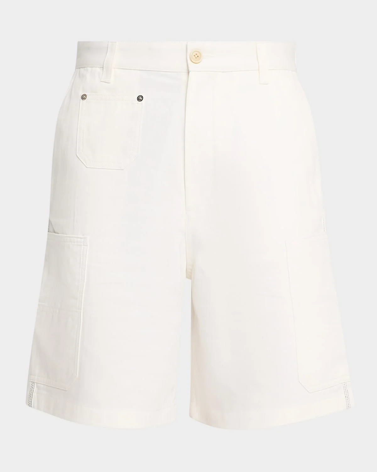 The Givenchy shorts are crafted from cotton denim with painter pockets for a utility aesthetic. Regular rise Side slip pockets Front coin pocket Side painter pockets Back patch pockets Embroidered back logo Buttonzip front; belt loops Side waistband adjusters Relaxed fit Cotton Made in Italy