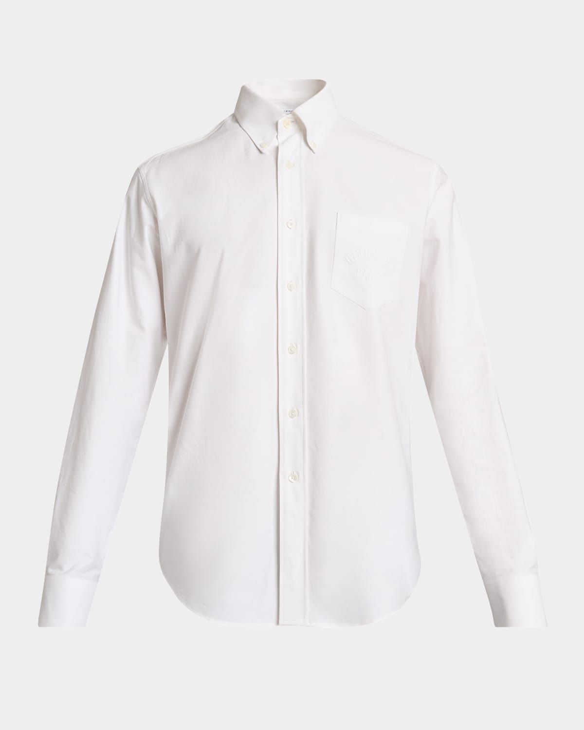 - Givenchy shirt in crisp cotton, highlighted with a tonal embroidered logo on the chest pocket - Button-down collar - Button placket - Long sleeves - Round barrel cuffs - Pleated back yoke - Shirttail hem - Cotton - Made in Portugal