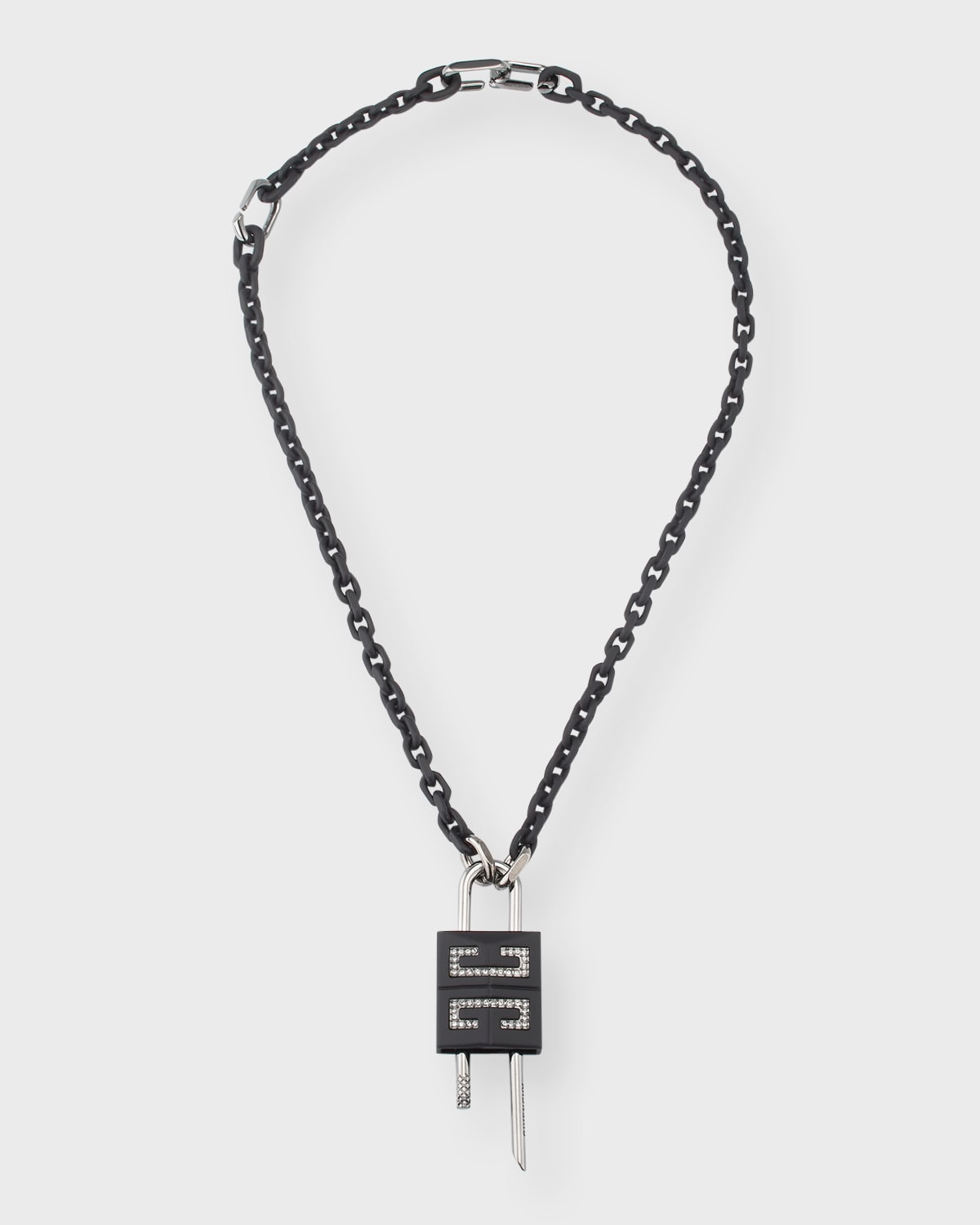 - Givenchy necklace with black chain and 4G lock pendant - Approx. 17.7 to 19.7"L (adjustable) - Brass and crystals - Made in Italy