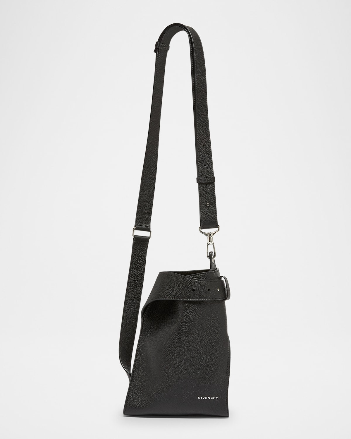 - Givenchy small crossbody bag in grained calf leather defined by an adjustable belted top - Foiled logo accent - Adjustable shoulder strap - Can be styled on the shoulder or crossbody - Approx. 10.6"H x 7.6"W x 2.4"D - Made in Italy
