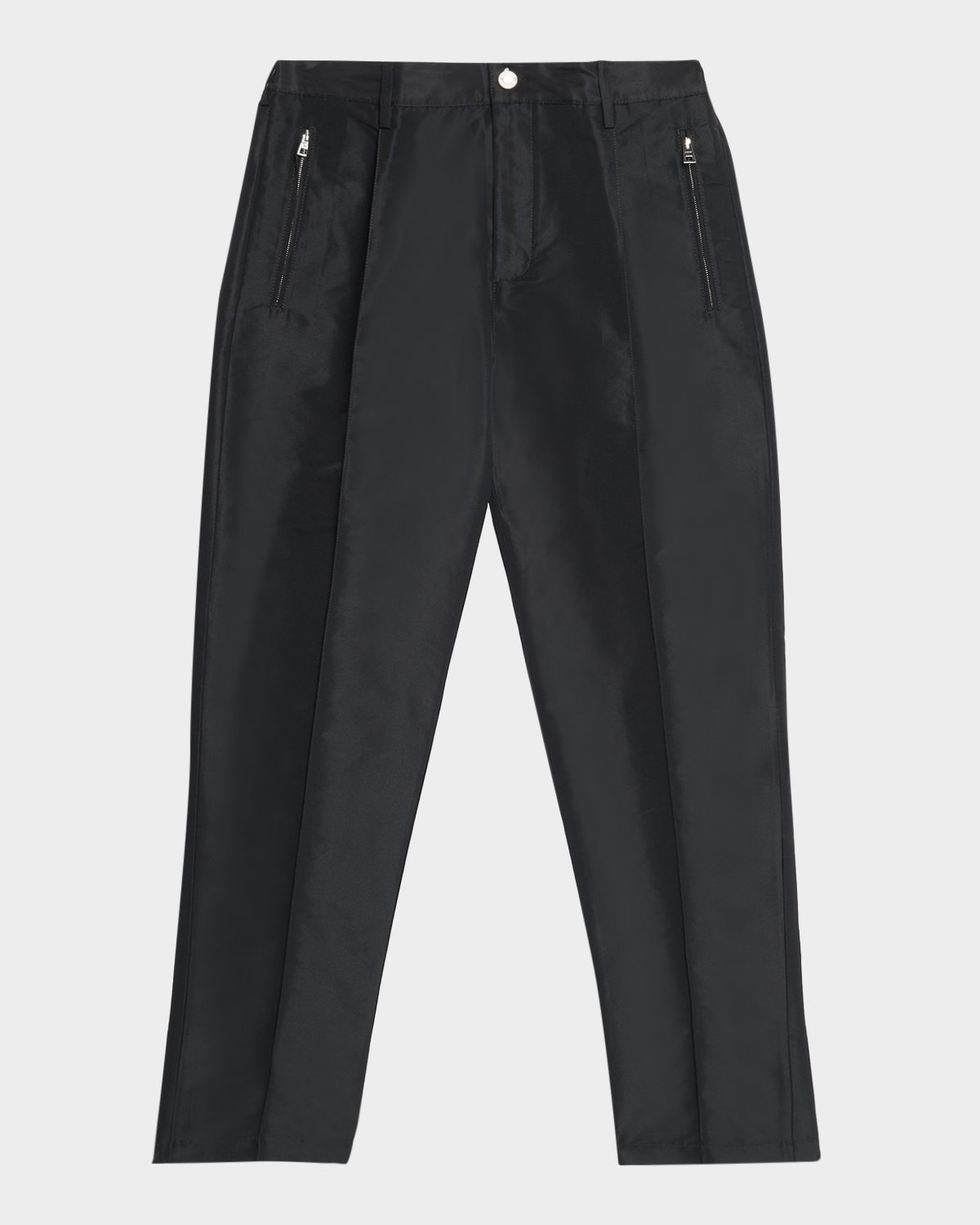 - Givenchy joggers highlighted with a pintuck pleated front - Regular rise - Side zip pockets - Back besom pockets - Classic fit through tapered legs - Full length - Button-zip front; belt loops - Polyester - Made in Italy