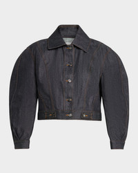 Designed with couture seams for a cocooning volume, this jacket by Givenchy is crafted from raw denim with contrasting stitching with a backtofront effect Classic collar; button front Long sleeves; button cuffs Yoked back Button back detailing and pockets Hip length Cotton Made in Romania
