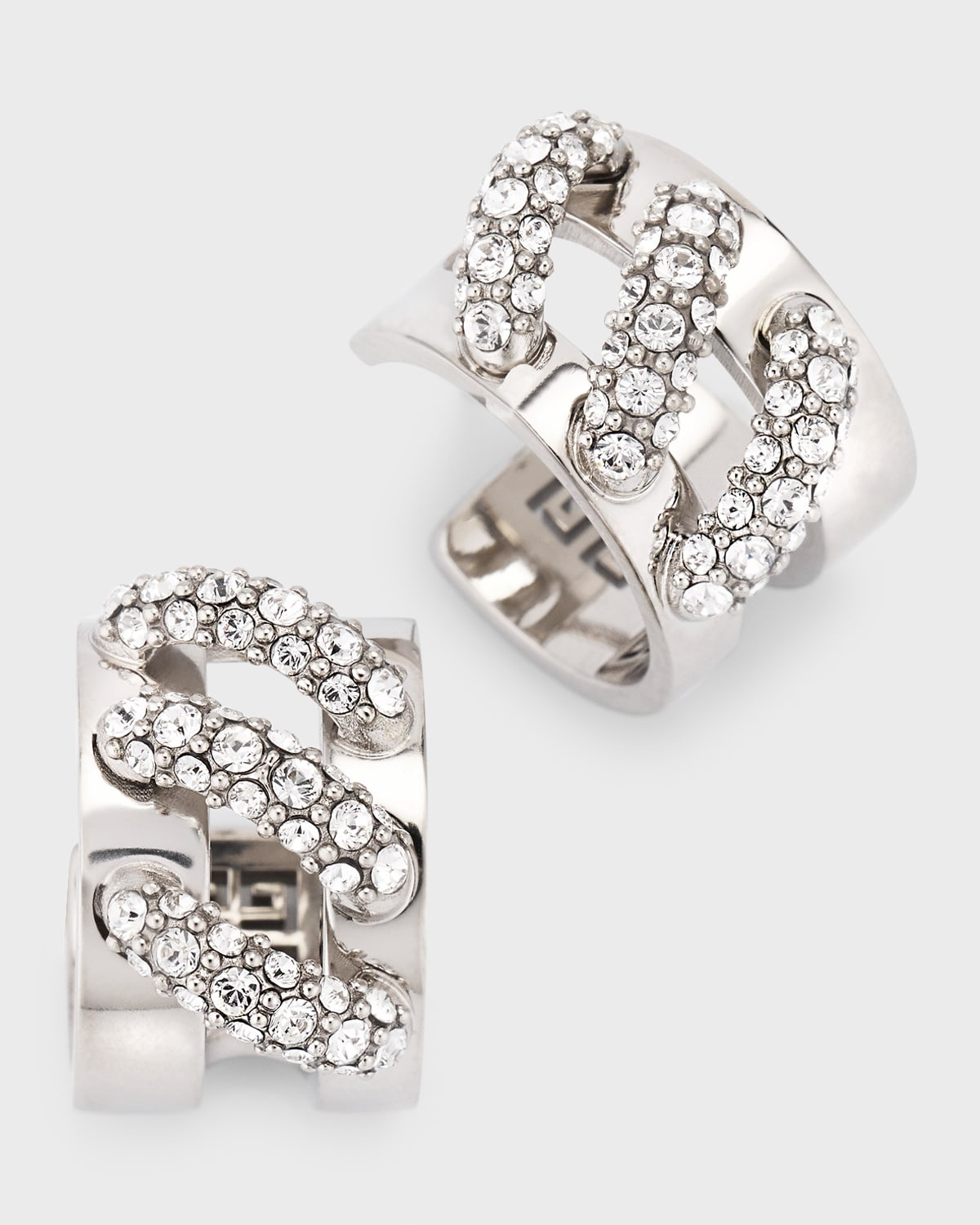 - Givenchy earrings with crystals - Silvertone brass with a shiny finish - Features signature 4G logo at back - For pierced ears - Made in Italy
