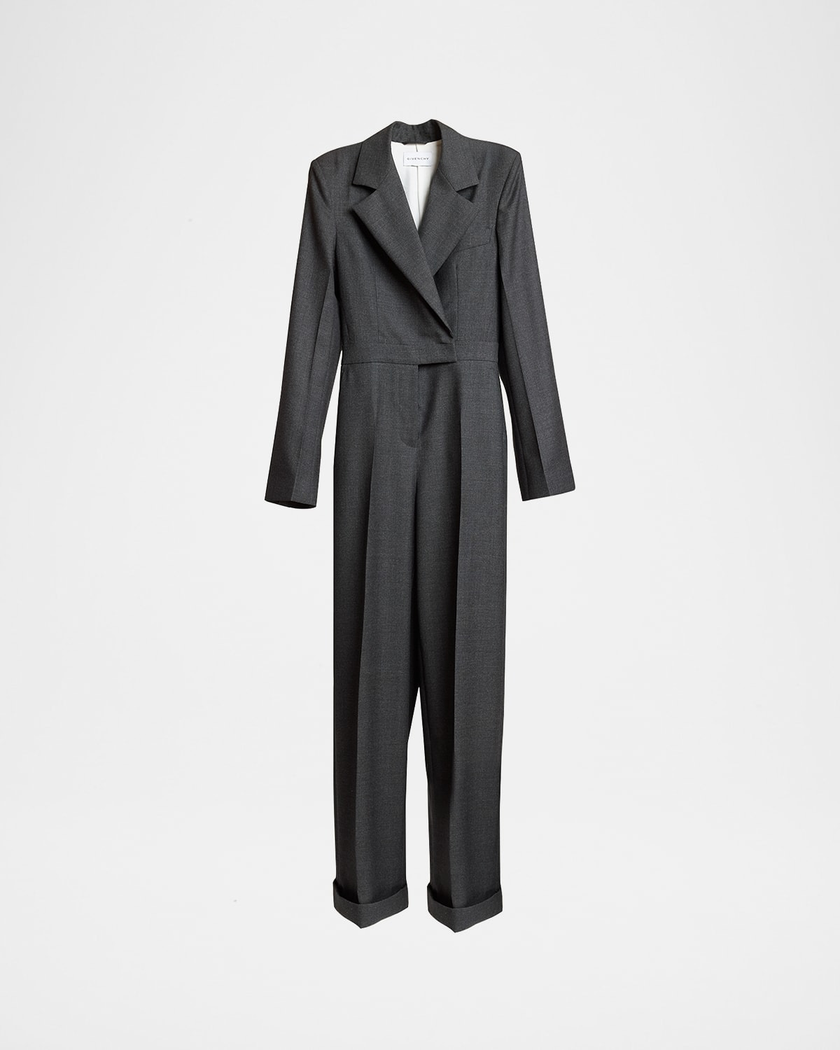 - Givenchy tuxedo-inspired jumpsuit is crafted from luxurious wool, featuring a tailored fit and wide-leg silhouette - Notch lapels; hidden closure - Long sleeves; button cuffs - Chest pocket - Full length - Cuffed hem - Back pocket - Tab/zip fly - Wool - Made in Italy