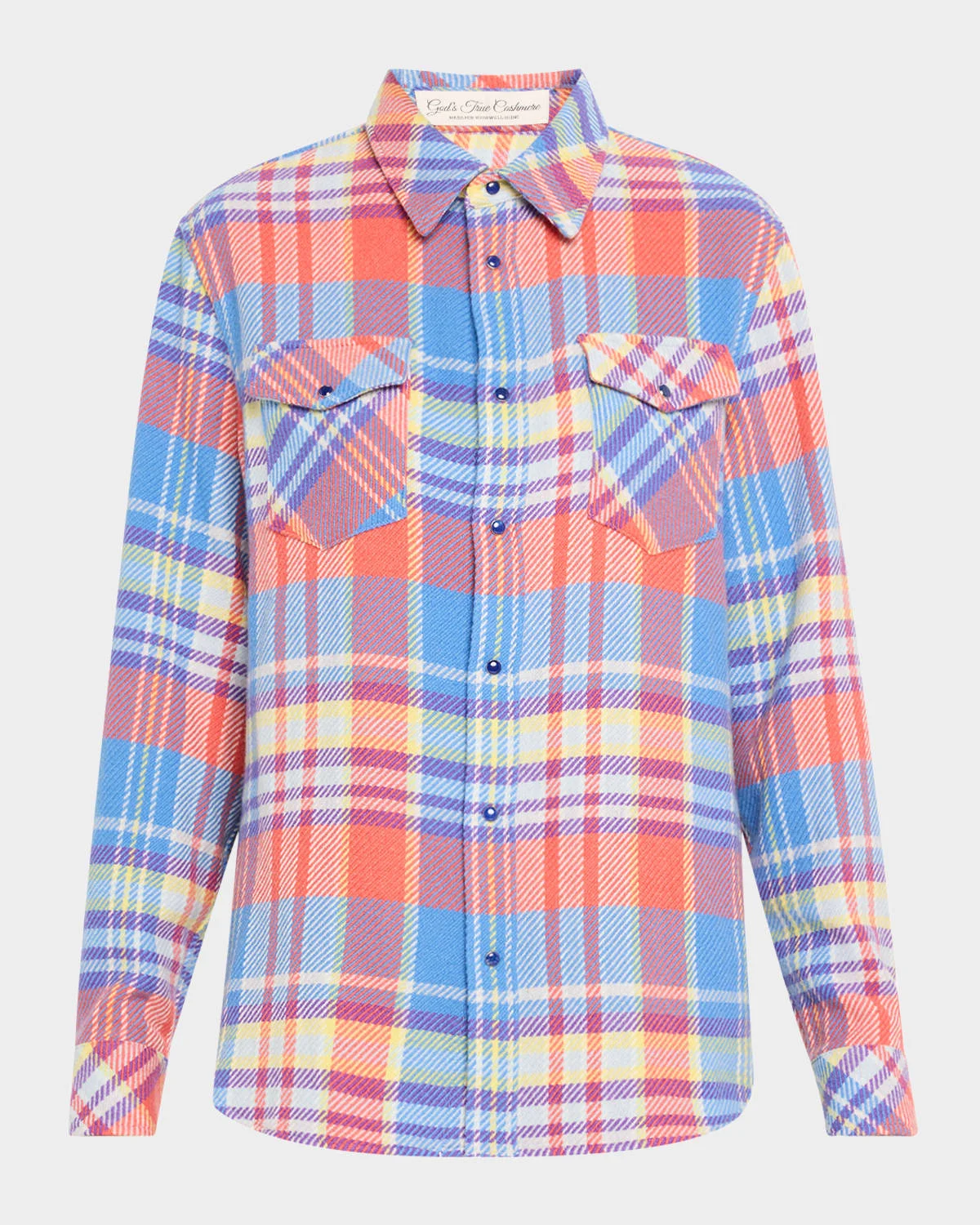 - God's True Cashmere shirt with creator tarton intarsia - Point collar; snap button front - Long sleeves; snap cuffs - Chest snap-flap pockets - Relaxed fit - Shirttail hem - Cashmere - Hand wash - Made in Italy