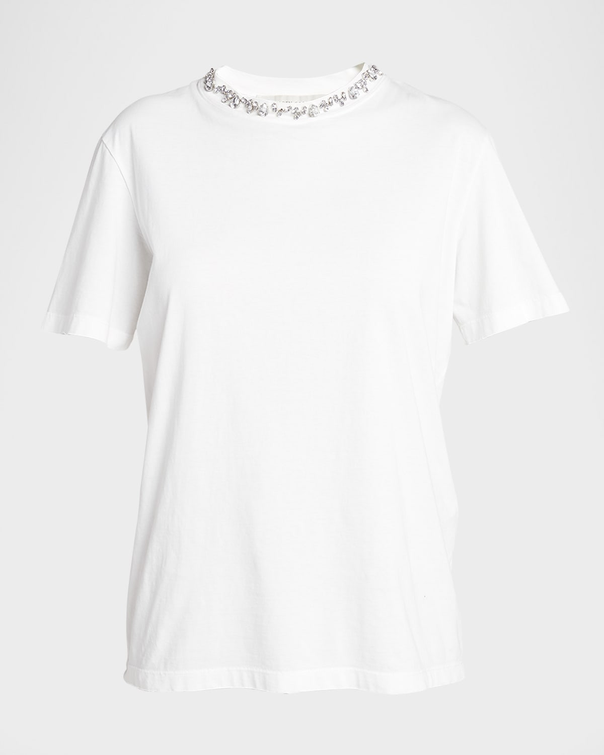 Golden Goose distressed jersey tshirt with a crystal collar and detachable logo patch Crew neckline Short sleeves Relaxed fit Pullover style Cotton Unlined Made in Italy