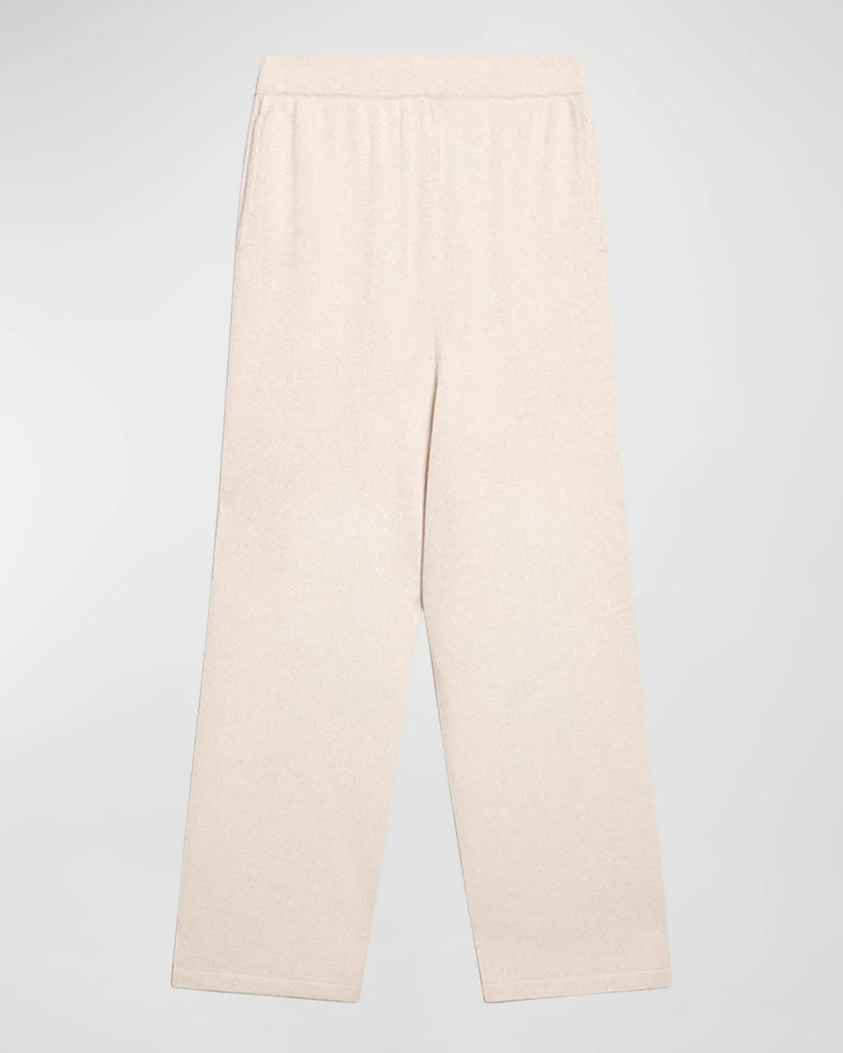Golden Cashmere-Wool Knit Wide-Leg Jogging Pants