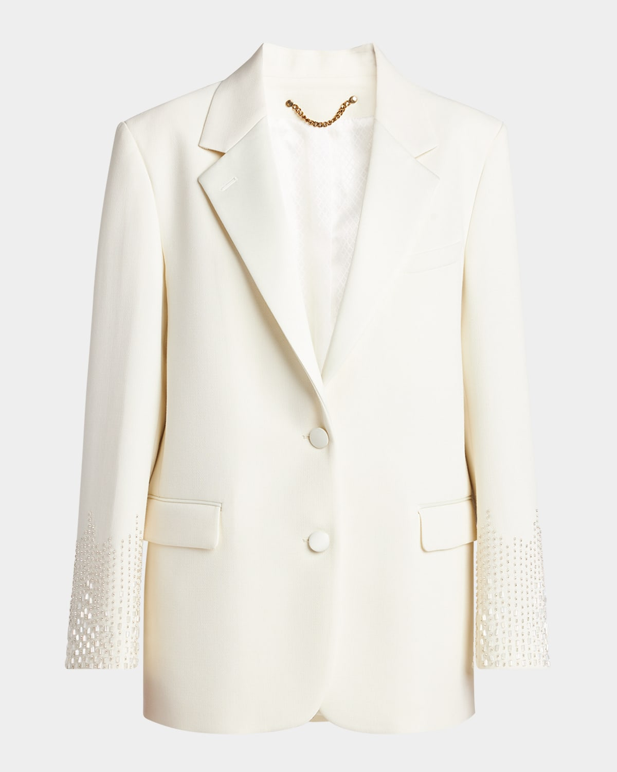 - Golden Goose "Journey" wool-blend jacket featuring bead-embellished cuffs - Notch lapels - Single-breasted front - Long sleeves - Hip flap pockets - Tailored fit - Button-front - Viscose/virgin wool/polyester - Lining: Acetate/viscose - Dry clean - Made in Italy