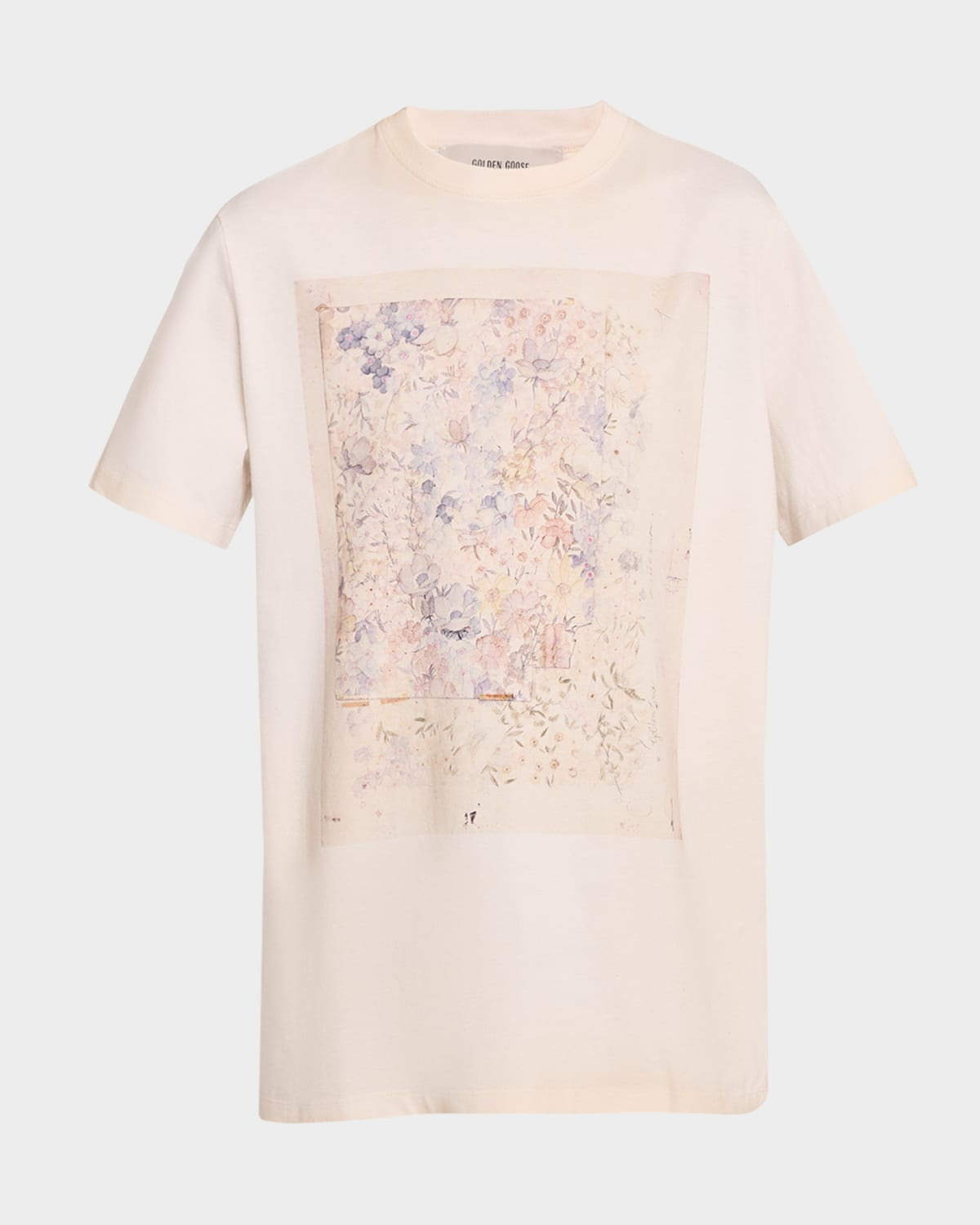 Soft cotton jersey Tshirt printed with a faded floral motif from the Journey Collection. Crew neckline Short sleeves Easy fit Hem falls to the hip Pullover style Cotton Machine wash cold Made in Italy
