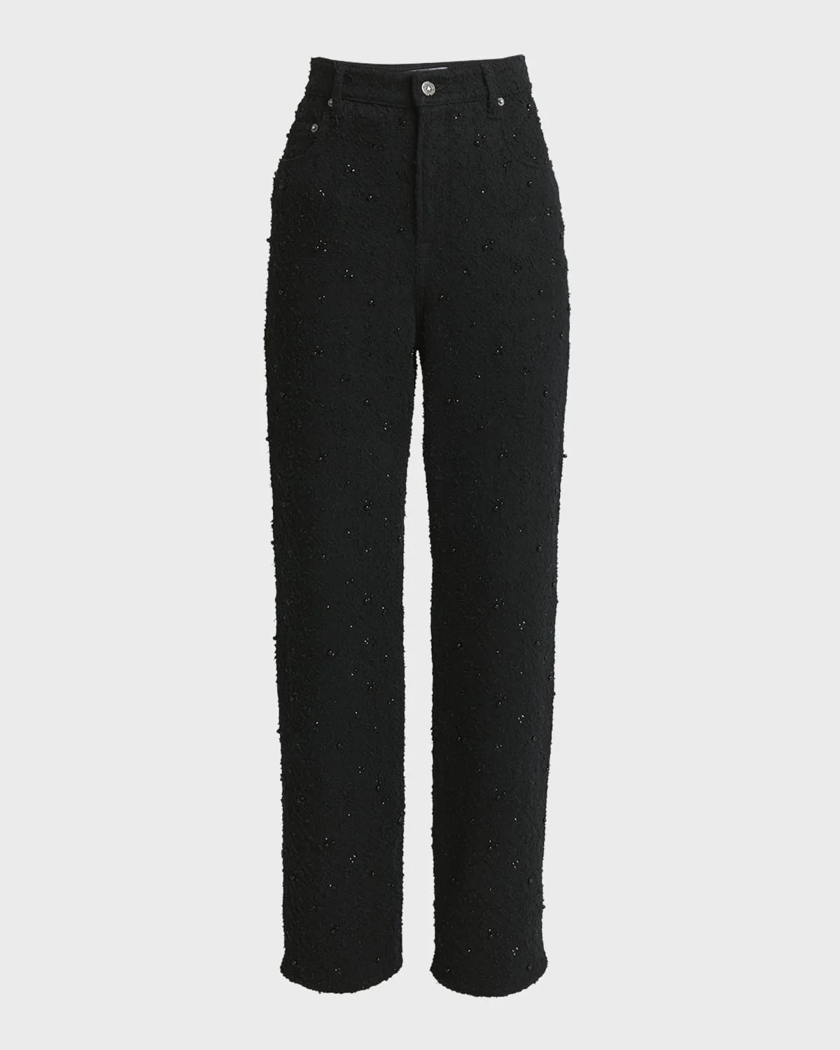 Golden Goose "Journey Kim" garmentdyed jeans featuring crystal embellishment High rise Fivepocket style Straight legs Full length Button/zip fly; belt loops Cotton Hand wash, inside out Made in Italy