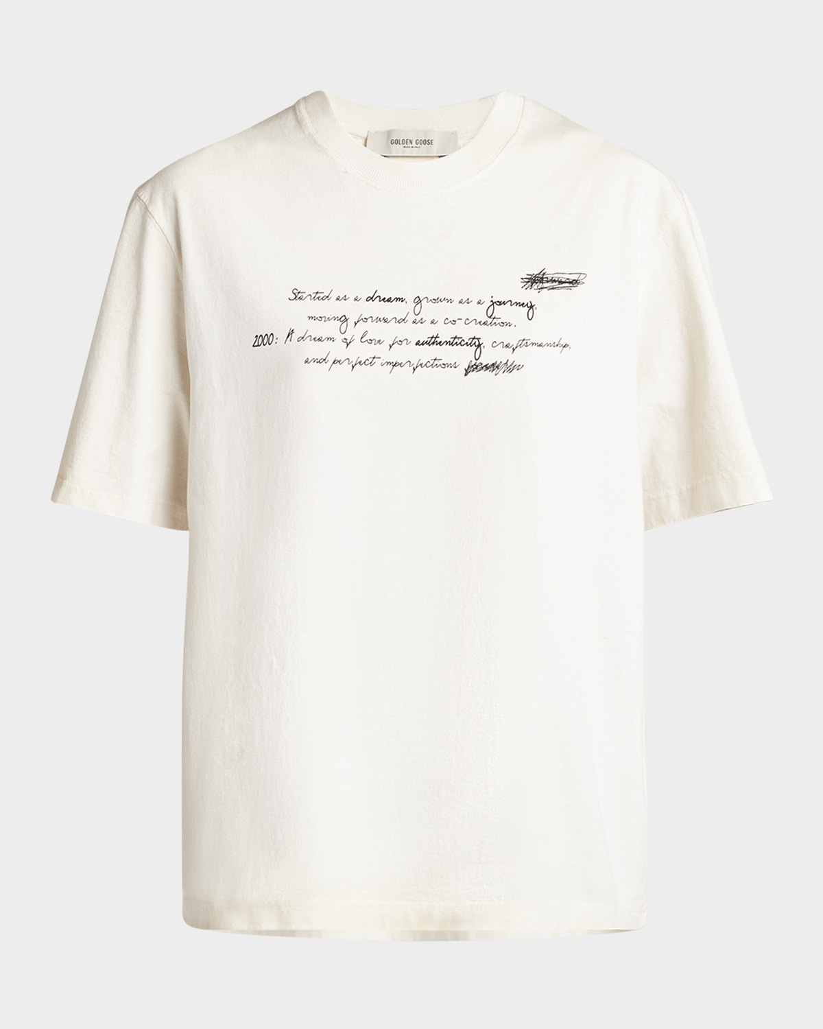- Golden Goose "Journey" graphic tee - Crew neckline - Short sleeves - Relaxed fit - Hem falls to the hip - Pullover style - Cotton/polyester - Machine wash cold - Made in Italy