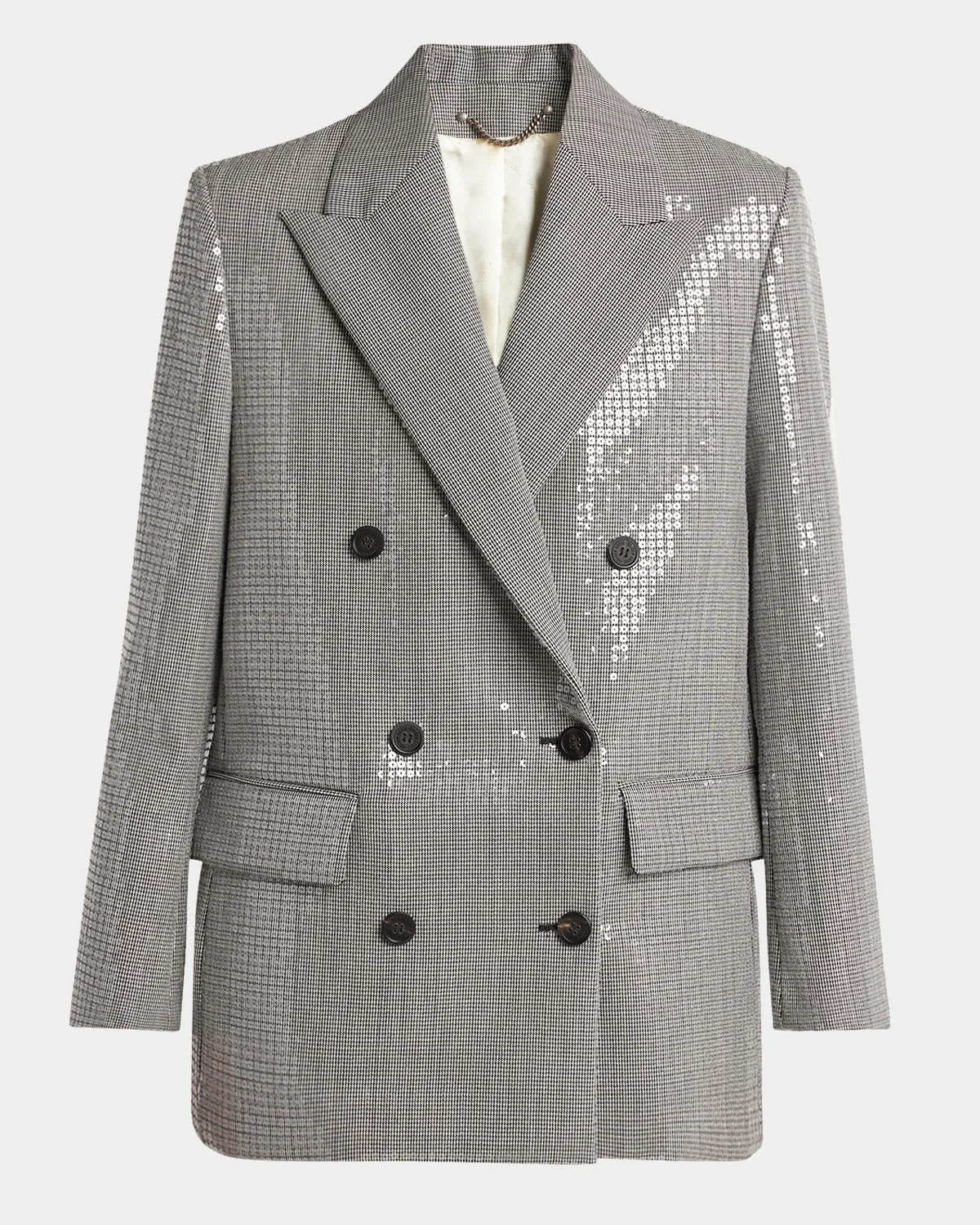 Double-breasted wool boyfriend jacket in micro houndstooth and sequins