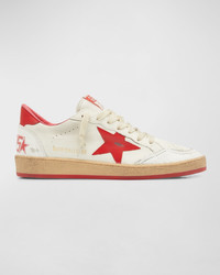 - Golden Goose sneakers in used-effect suede/leather and fabric - Signature star on sides - Flat heel - Perforated round toe - Lace-up vamp - Logo on tongue and backstay - "SNEAKERS" print on the heel - Breathable leather/cotton lining - Signature stained rubber outsole - "Ball Star" is made in Italy