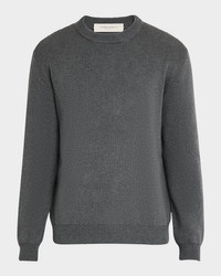 Men's round-neck sweater in dark gray cotton with logo on the back