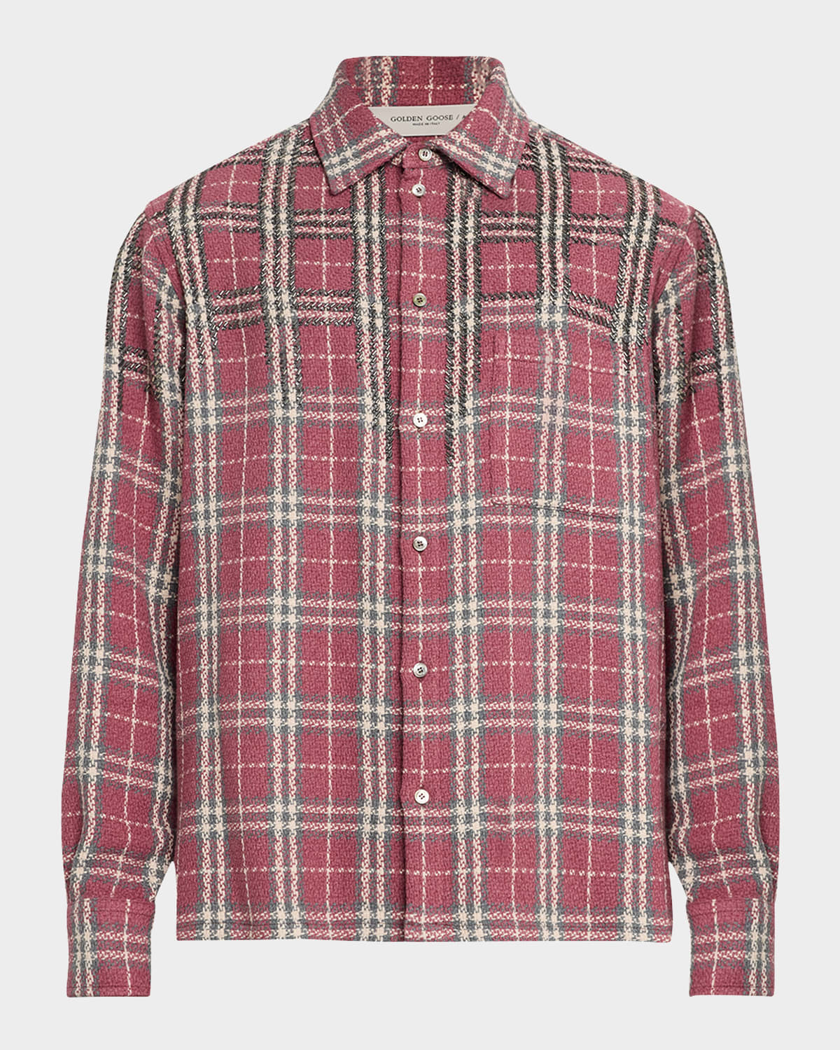 - Golden Goose shirt from the Journey collection - Woven check pattern with degrade embroidery - Spread collar - Button placket - Chest patch pocket - Double star on back - Boxy fit - Long sleeves with buttoned cuffs - Cotton - Made in Italy - Model is 6'1"/185cm.