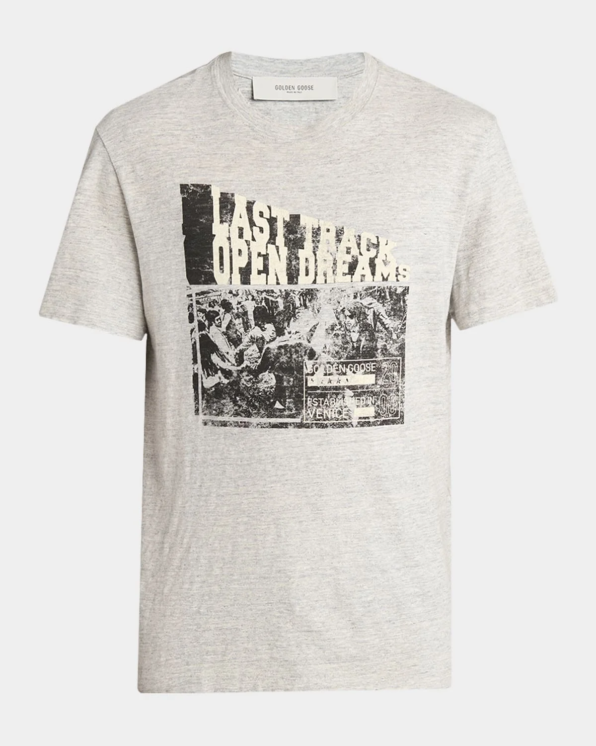 An Open Dreams graphic tells a story on this "Journey" cotton Tshirt by Golden Goose. Crew neckline Short sleeves Classic fit Pullover style Cotton Made in Italy