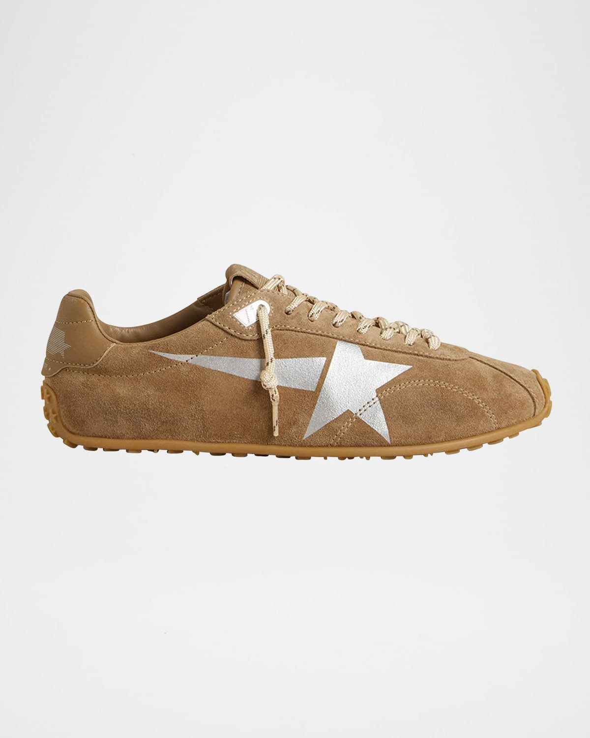 - Golden Goose "Marathon" track and field-inspired sneakers handmade from buttery suede with a lived-in finish - Features a starred rubber outsole to make a truly unique impression - Flat heel - Reinforced round toe - Lace-up vamp - Branded tongue - Leather/cotton/polyester/polyurethane/viscose lining - Metallic leather backstay with logo - Signature metallic star motif on the side - Made in Italy
