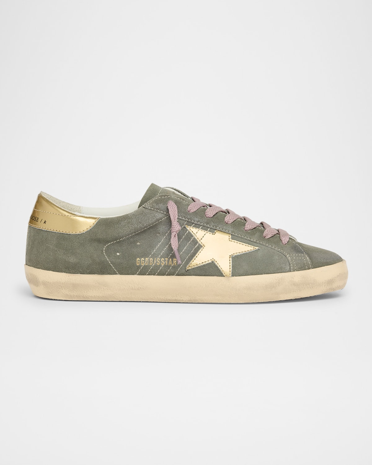 - Golden Goose "Super Star" low-top sneakers in suede with a vintage finish - Signature star in metallic leather - Flat heel - Round toe - Lace-up vamp - Pink shoelaces - Branded tongue - Padded collar - Metallic leather backstay with logo - Rubber outsole - Cotton/leather/polyester/polyurethane/viscose lining - Signature stained sole - Made in Italy