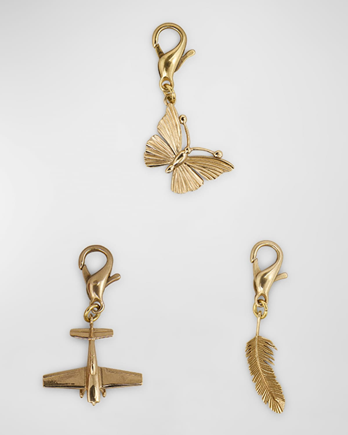 Golden Goose "The Dream" charm set in brass Includes three charms: butterfly, airplane, and feather Lobster clasp closure Charms only Approx. 0.9"H x 0.3"W Made in Italy