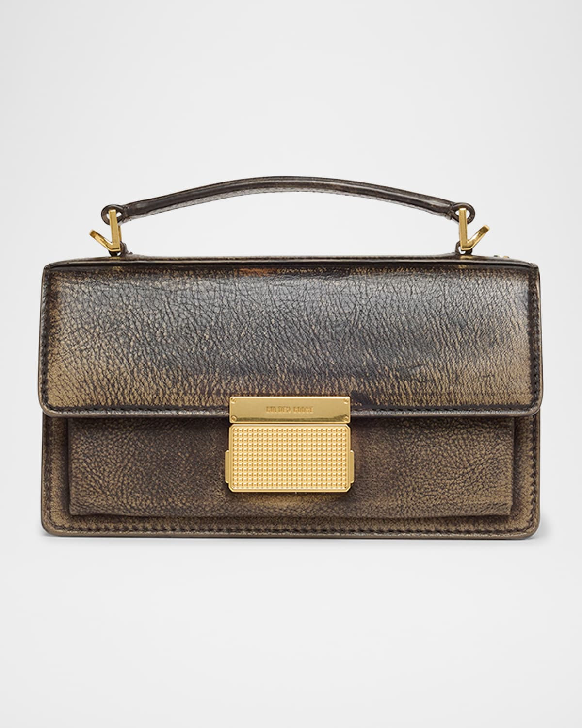 - Small and slim, this "Venezia" crossbody bag from Golden Goose is crafted in treated leather with a faded, vintage effect - Flat top handle - Detachable, adjustable crossbody strap - Can be worn as a top-handle or crossbody bag - Flap top with side-release buckle closure - Interior, one slip pocket and one card slot - Approx. 5.9"H x 7.5"W x 2.9"D - Made in Italy