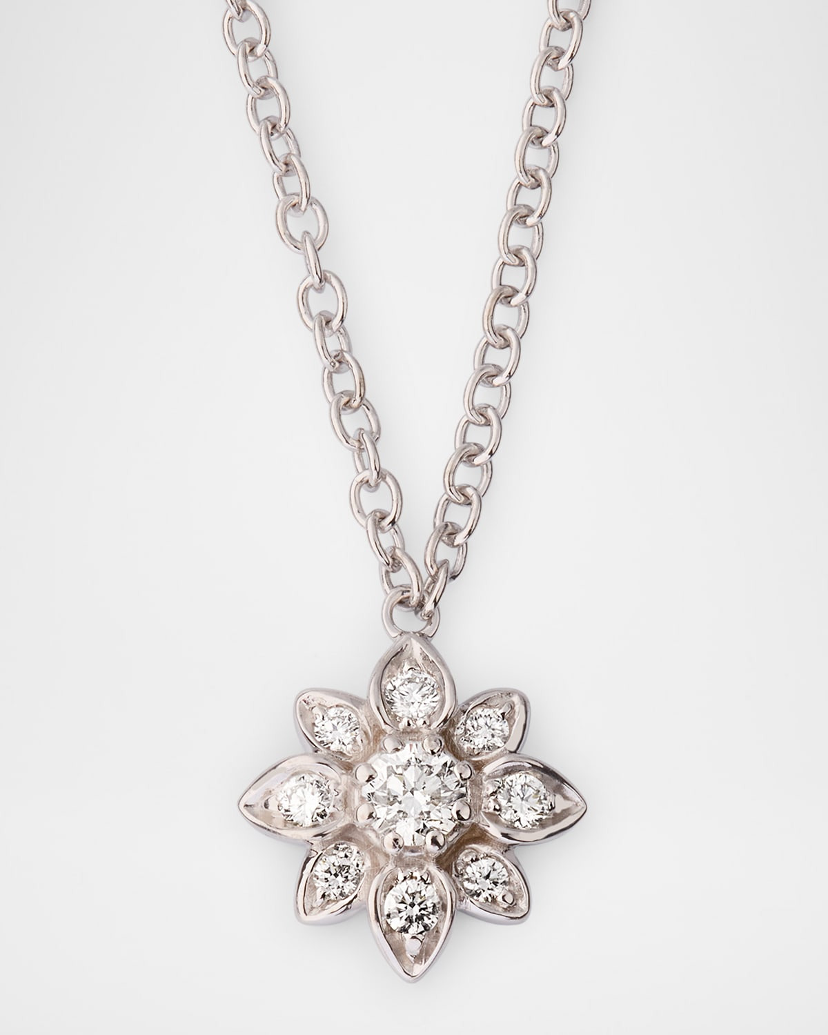 18K White Gold Diamond Flower Pendant Necklace