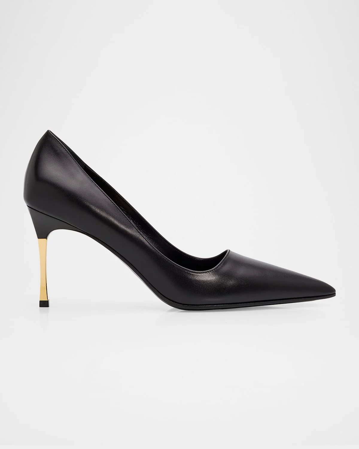 Crafted of smooth leather, the "Trinity" pumps from Gucci are defined by a sharp toe and gold-tone heel 3.25 in / 85 mm stiletto heel Pointed toe Slip-on style Leather lining and outsole Made in Italy Size Note: Runs true to size.