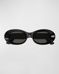 - Gucci "GG1527S" beveled oval sunglasses in acetate - Lens/bridge/temple (in mm): 54-17-145 - Saddle nose bridge - Logo on temples - Wide, tapered arms - 100% UVA/UVB protection - Made in Italy - Proposition 65 warning for California residents