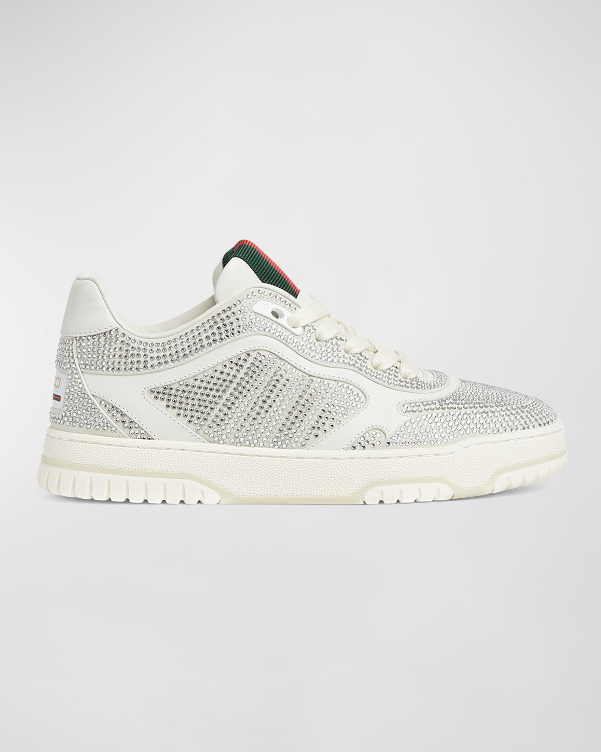 - Gucci allover crystal-embellished leather low-top sneakers with signature web strap - Flat heel - Round toe - Lace-up vamp - Lining: Leather - Rubber outsole - Made in Italy