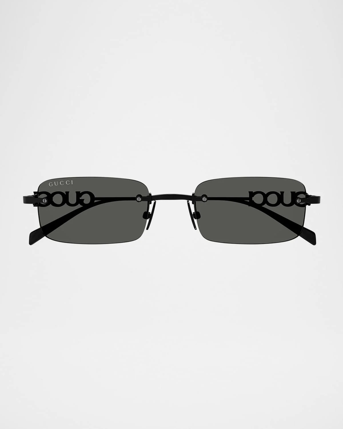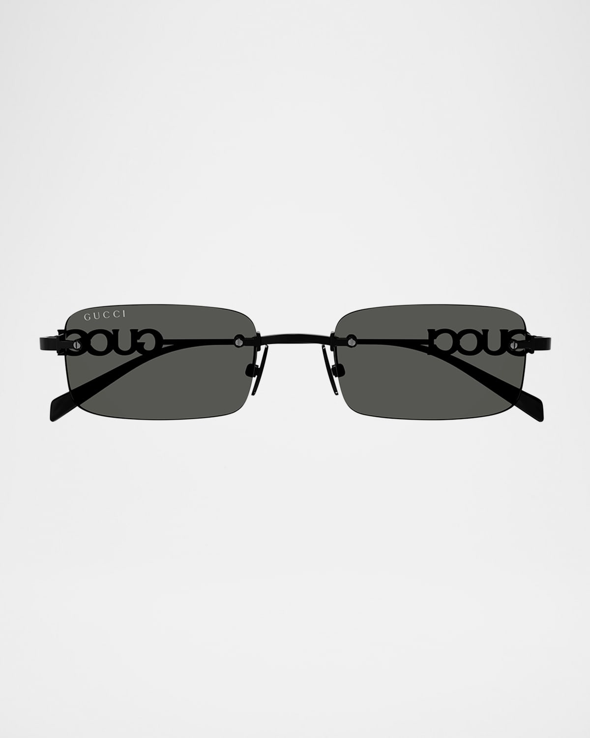 - Gucci "GG1808SM" rectangle sunglasses in metal - Lens/bridge/temple (in mm): - 52-20-145 - Solid-color lenses - Right lens logo script - Adjustable nose pads - Temples with logo cutout - Thin arms - Metal - 100% UVA/UVB protection - Made in Japan - Proposition 65 warning for California residents
