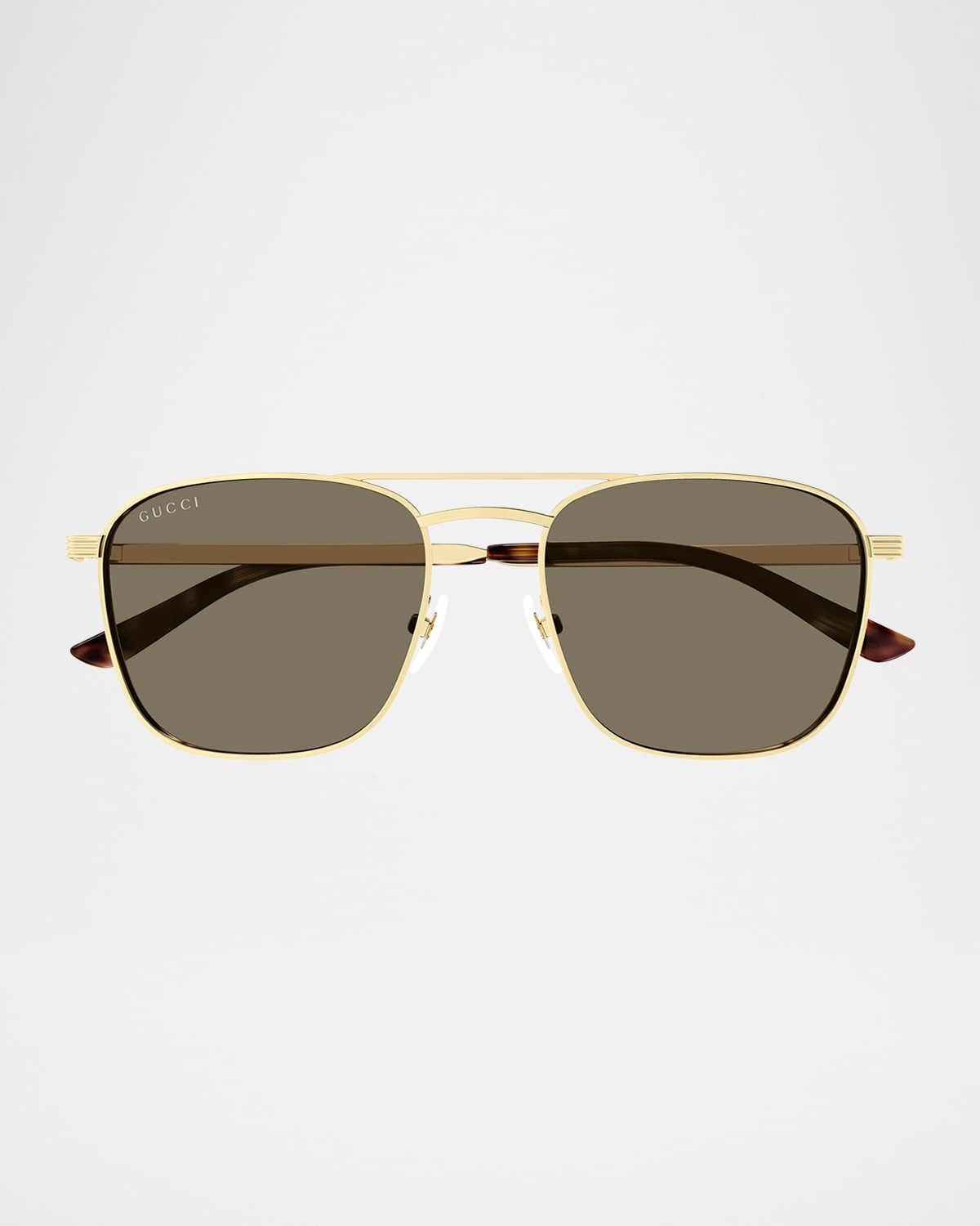 - Gucci "GG1881SM" aviator sunglasses in metal - Lens/bridge/temple (in mm): - 54-18-145 - Solid-color lenses - Right lens logo script - Double nose bridge - Adjustable nose pads - Engraved logo on the temples - Thin arms - Curved, capped temple tips - Metal - 100% UVA/UVB protection - Made in Italy - Proposition 65 warning for California residents