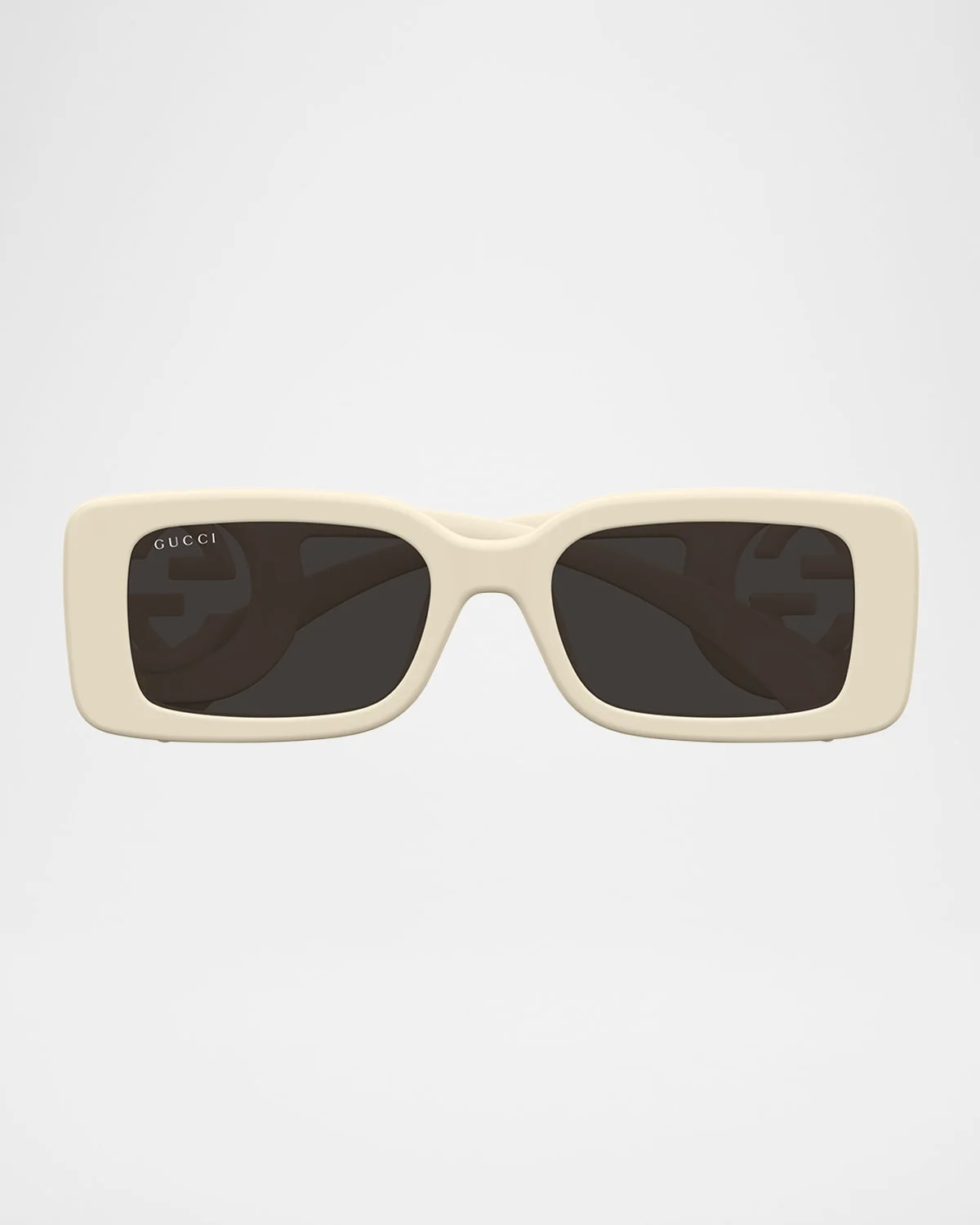 - Gucci rectangle sunglasses in acetate - Lens/bridge/temple (in mm): 56-23-145 - Gradient lenses; logo on corner - Saddle nose bridge - Interlocking GG on temples - Wide, tapered arms - 100% UVA/UVB protection - Made in Italy - Proposition 65 warning for California residents