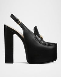 Horsebit-embellished leather slingback platform pumps Black