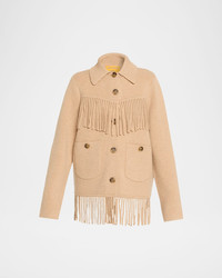 Designed from a luxurious blend of heavyweight mercerized wool and cashmere, this Westernstyle jacket by Guest in Residence is enhanced with knitted movementrich fringe 5GG Spread collar; button front Long sleeves with topstitched elbow patches Two front patch pockets with button closures Yoked front and back Relaxed fit Midlength Wool/cashmere Imported