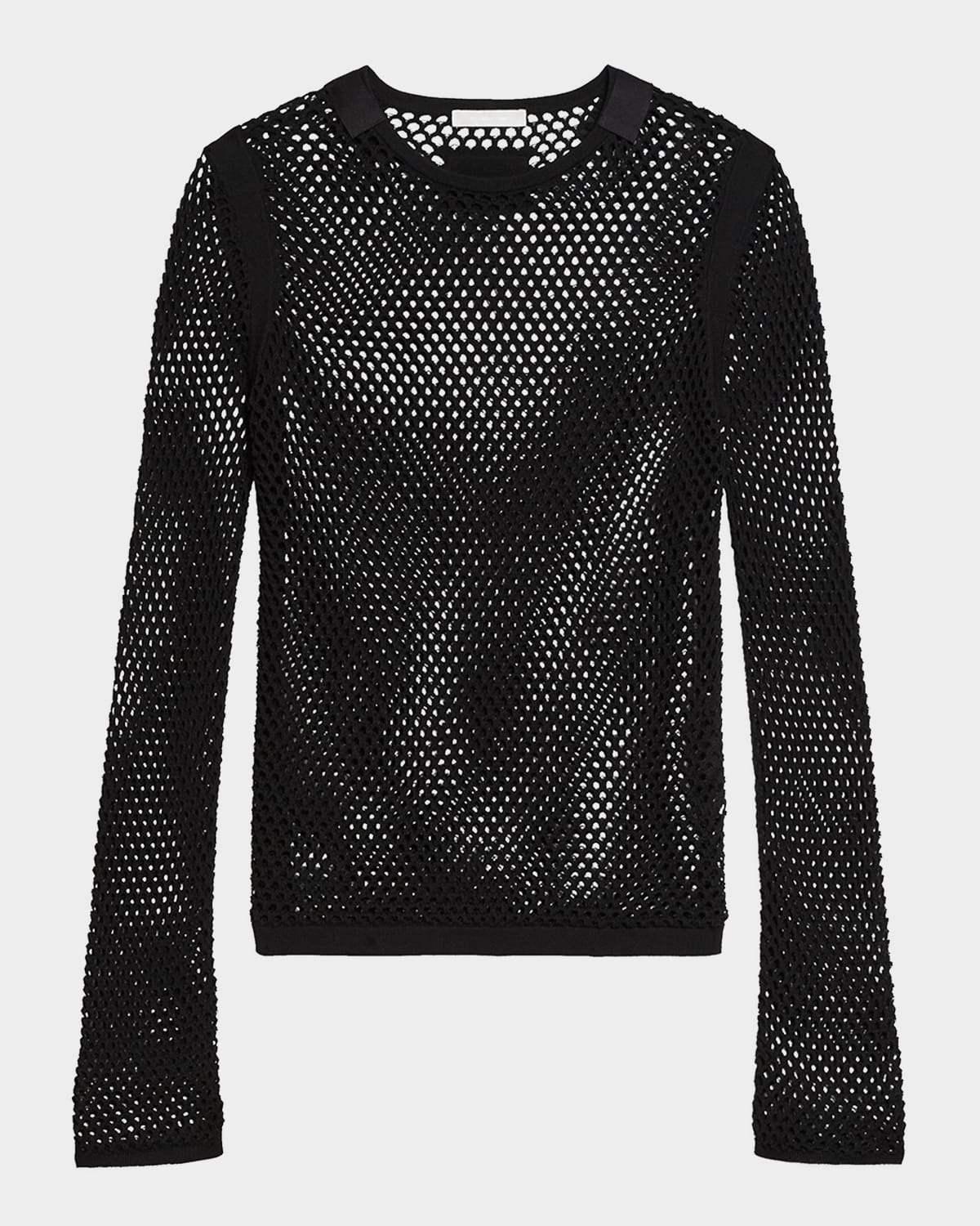 - Helmut Lang mesh top finished with signature seatbelt tape - Crew neckline - Long sleeves; approx. 32.8"L - Easy fit - Hem sits at the hip - Pullover style - Cotton - Unlined - Dry clean - Imported