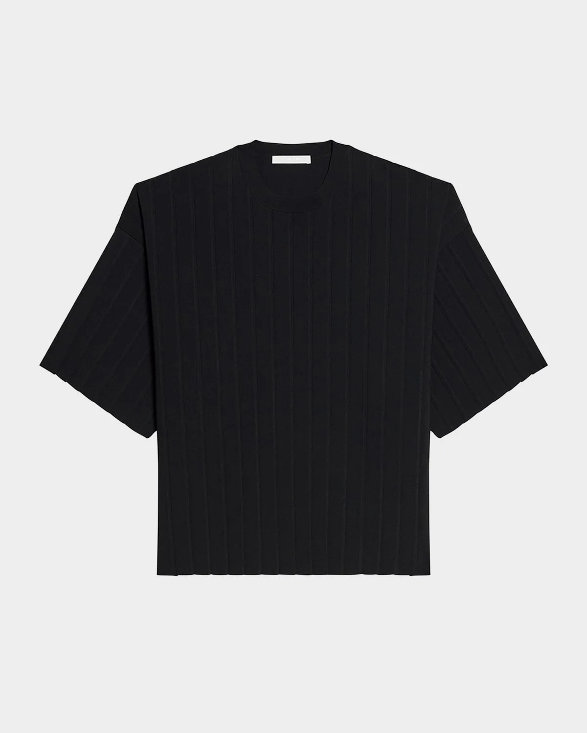 - Helmut Lang solid T-shirt with allover pleating - Approx. 28.25"L from shoulder to hem - Crew neckline - Short sleeves; approx. 23.0"L - Pullover style - Relaxed fit - Viscose/polyester - Unlined - Imported