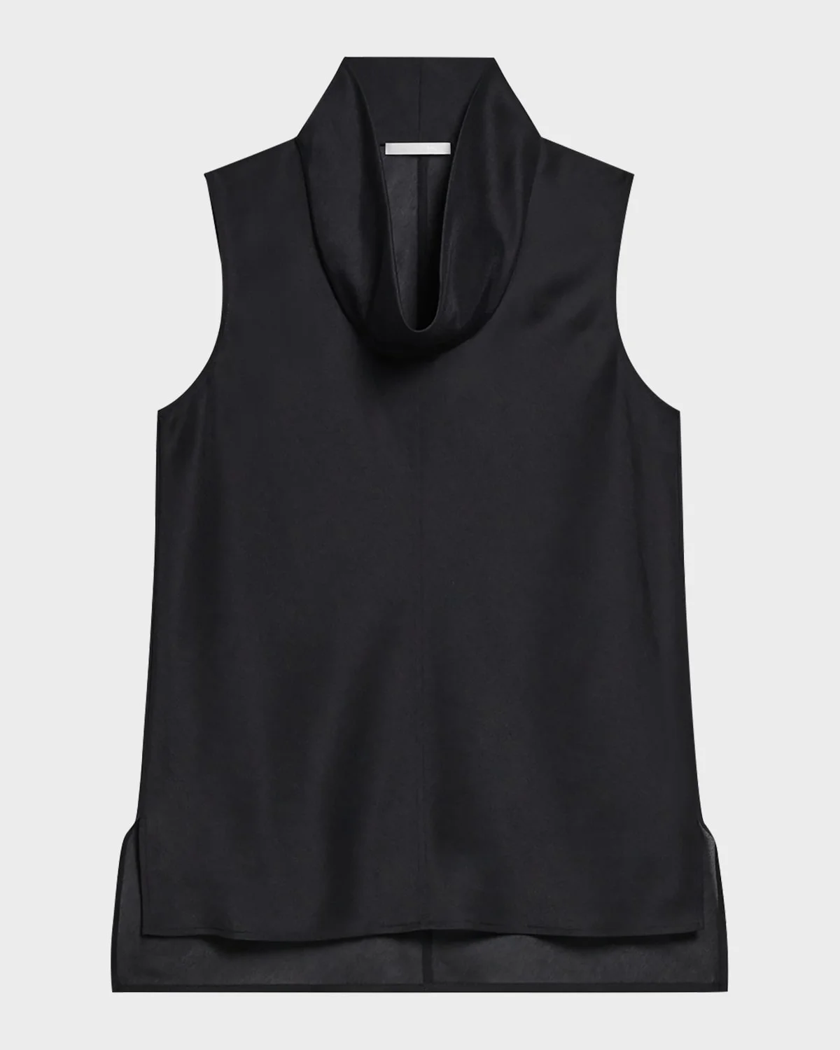 Crafted from slub organza, this Helmut Lang top boasts a cowl neckline and a semisheer silhouette for a modern look and feel. Sleeveless Relaxed fit Side slit hem Pullover style Polyester Dry clean only Imported