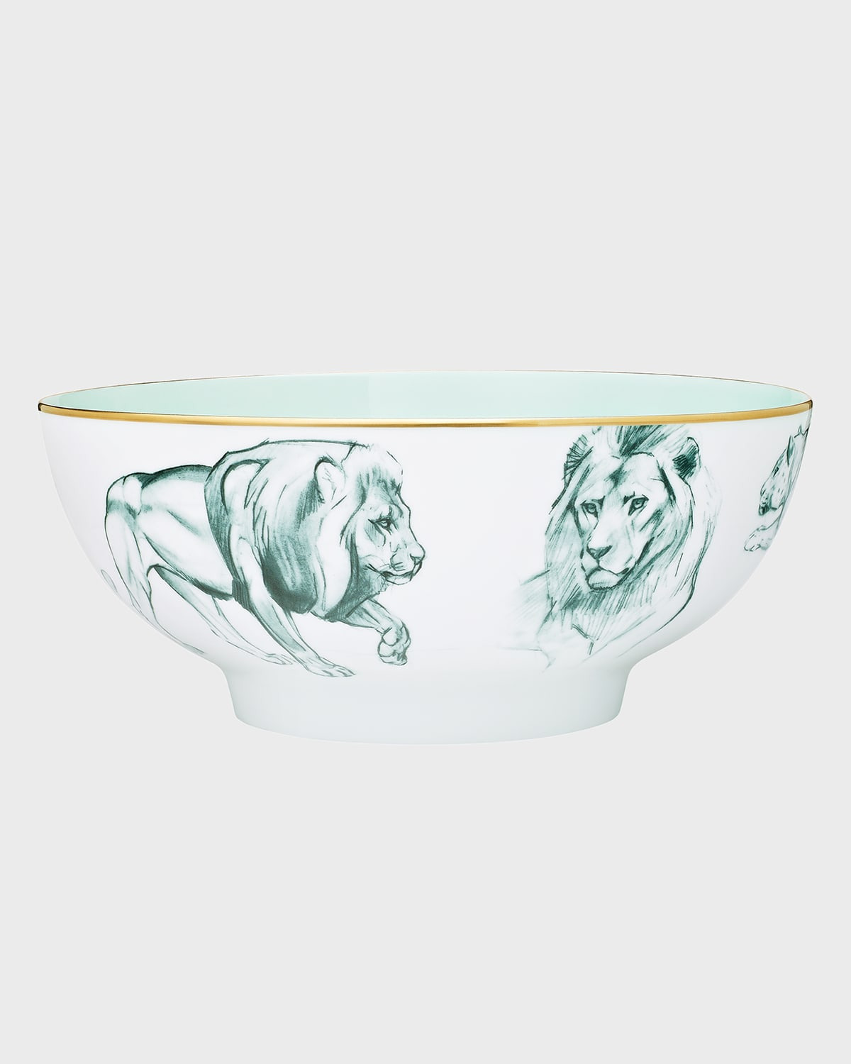 Porcelain salad bowl features illustrations of animals in their natural settings Painted by infamous naturalist and painter Rober Dallet Holds 88 fluid ounces Made in France