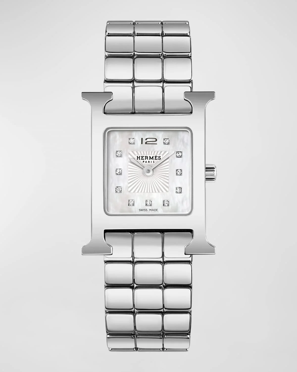 Case: stainless steel, 21 x 21 mm Antiglare sapphire crystal Waterresistant to 30 m Dial: white natural motherofpearl dial set with 11 diamond markers Movement: quartz, made in Switzerland Functions: hours, minutes Bracelet: stainless steel 2 Year International Warranty