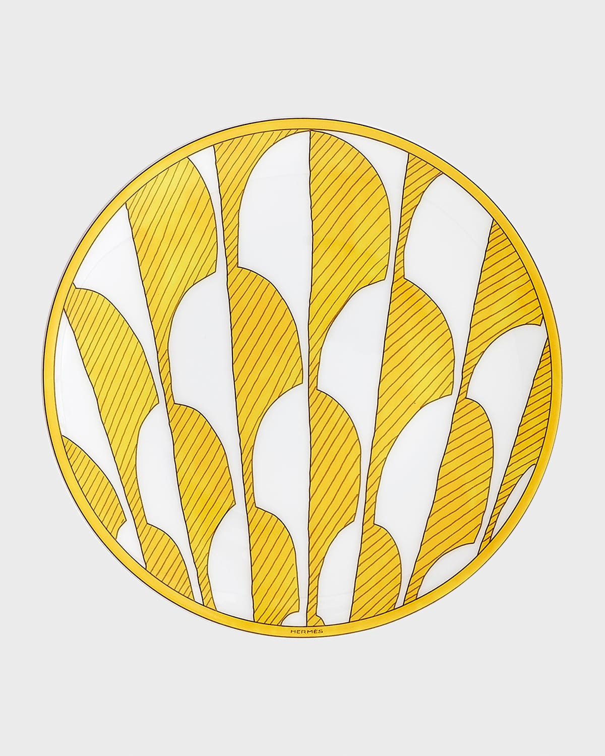 Plate crafted of porcelain From the Soleil d'Hermes collection, an ode to the blazing light and warmth of summer Approx. 5.5" diameter Dishwasher and microwave safe Made in France